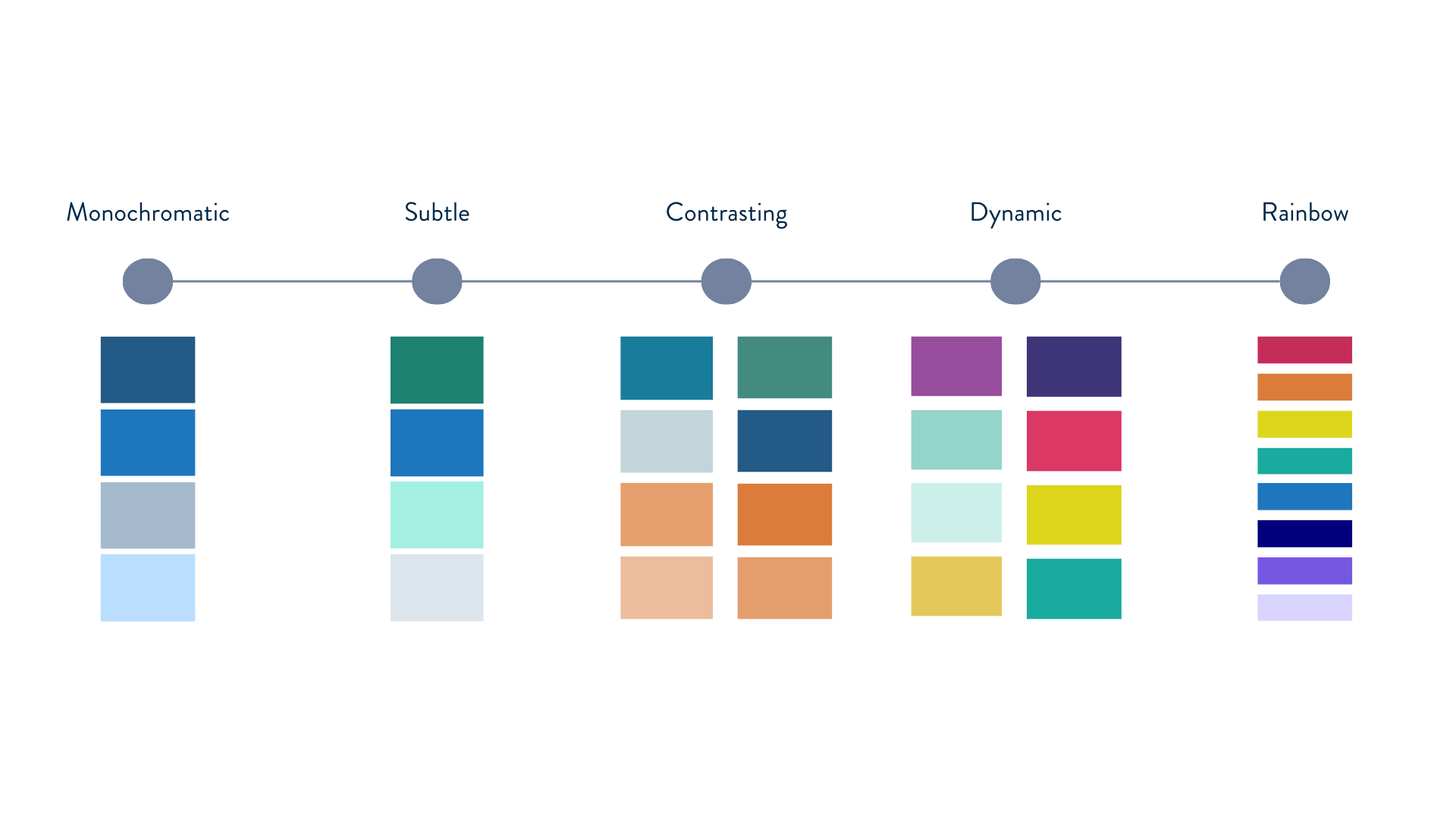 One hue in light, medium, and dark variations